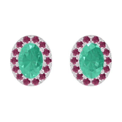« L'ATELIER » Nº201403Cercei Aur alb 18 carate - Smarald Oval 0.3 carate (2 X) - Halo Rubin