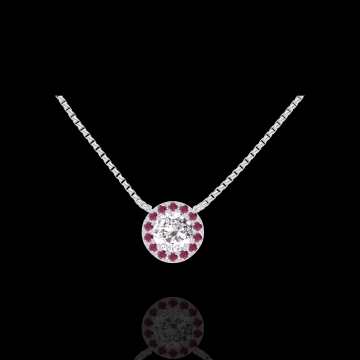 « L'ATELIER » Nº201463Colier Aur alb 18 carate - Diamant rotund 0.3 carate - Halo Rubin - Lanţ Veneţian