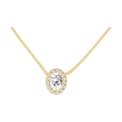 « L'ATELIER » Nº201550Colier Aur galben 9 carate - Diamant Oval 0.3 carate - Halo Diamant - Lanţ Veneţian