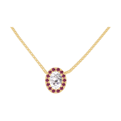 « L'ATELIER » NR. 201558Colier Aur galben 9 carate - Diamant Oval 0.3 carate - Halo Rubin - Lanţ Veneţian