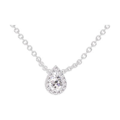 « L'ATELIER » Nº201579Colier Aur alb 18 carate - Diamant Pară 0.3 carate - Halo Diamant - Lanţ Zale