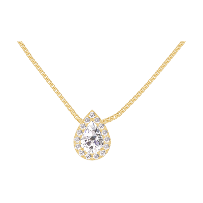 « L'ATELIER » Nº201582Colier Aur galben 9 carate - Diamant Pară 0.3 carate - Halo Diamant - Lanţ Veneţian