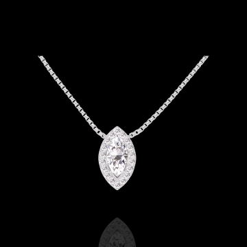 « L'ATELIER » Nº201615Colier Aur alb 18 carate - Diamant Marquise 0.3 carate - Halo Diamant - Lanţ Veneţian
