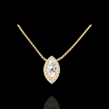« L'ATELIER » Nº201806Colier Aur galben 9 carate - Diamante de laborator Marquise 0.3 carate - Halo Diamante de laborator - Lanţ Veneţian