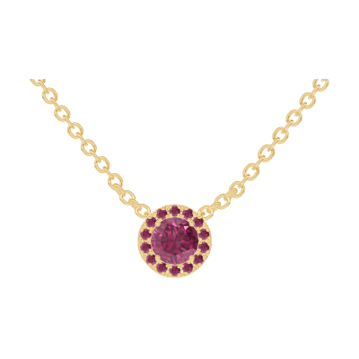 « L'ATELIER » NR. 201842Colier Aur galben 9 carate - Rubin rotund 0.3 carate - Halo Rubin - Lanţ Zale