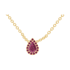 Colier Aur galben 18 carate - Rubin Pară 0.3 carate - Halo Rubin - Lanţ Zale