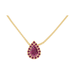 « L'ATELIER » NR. 201973Colier Aur galben 18 carate - Rubin Pară 0.3 carate - Halo Rubin - Lanţ Veneţian