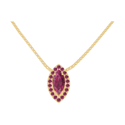 « L'ATELIER » NR. 202006Colier Aur galben 9 carate - Rubin Marquise 0.3 carate - Halo Rubin - Lanţ Veneţian
