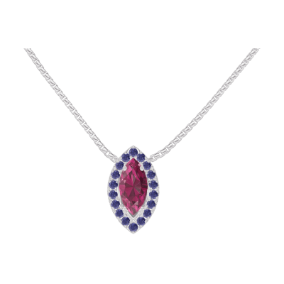 « L'ATELIER » Nº202016Colier Aur alb 9 carate - Rubin Marquise 0.3 carate - Halo Safir albastru - Lanţ Veneţian