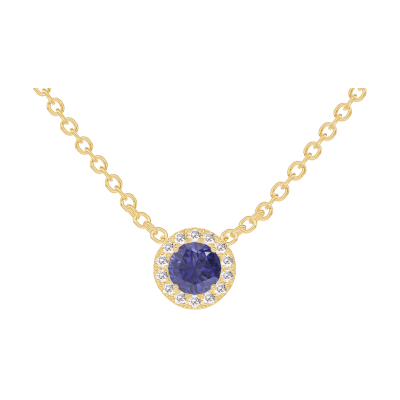 « L'ATELIER » Nº202025Colier Aur galben 18 carate - Safir albastru rotund 0.3 carate - Halo Diamant - Lanţ Zale