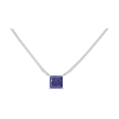 Colier Aur alb 9 carate - Safir albastru Princess 0.3 carate - Lanţ Veneţian