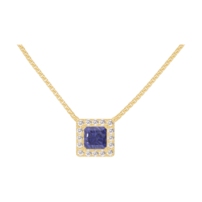 « L'ATELIER » Nº202061Colier Aur galben 18 carate - Safir albastru Princess 0.3 carate - Halo Diamant - Lanţ Veneţian
