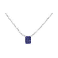 Colier Aur alb 9 carate - Safir albastru Smarald 0.3 carate - Lanţ Veneţian