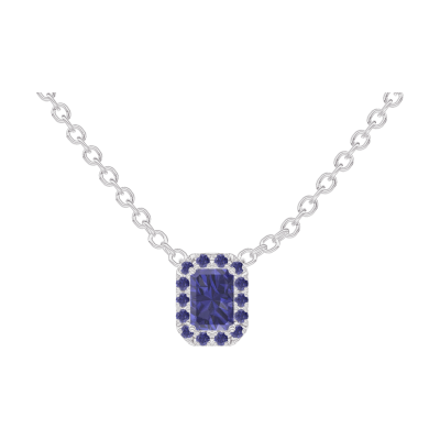 « L'ATELIER » Nº202108Colier Aur alb 9 carate - Safir albastru Smarald 0.3 carate - Halo Safir albastru - Lanţ Zale