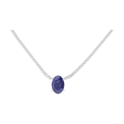 « L'ATELIER » Nº202120Colier Aur alb 9 carate - Safir albastru Oval 0.3 carate - Lanţ Veneţian