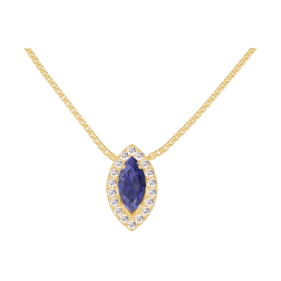 « L'ATELIER » Nº202189Colier Aur galben 18 carate - Safir albastru Marquise 0.3 carate - Halo Diamant - Lanţ Veneţian