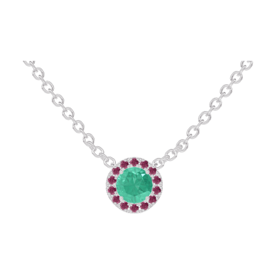 « L'ATELIER » Nº202227Colier Aur alb 18 carate - Smarald rotund 0.3 carate - Halo Rubin - Lanţ Zale