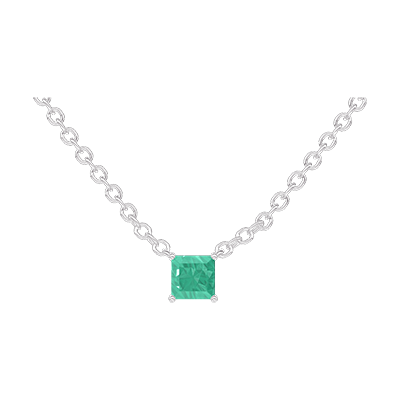 « L'ATELIER » Nº202244Colier Aur alb 9 carate - Smarald Princess 0.3 carate - Lanţ Zale