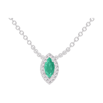 « L'ATELIER » NR. 202379Colier Aur alb 18 carate - Smarald Marquise 0.3 carate - Halo Diamant - Lanţ Zale