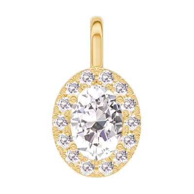 « L'ATELIER » NR. 203025Pandantiv Aur galben 18 carate - Diamant Oval 0.3 carate - Halo Diamant - Fără lanţ
