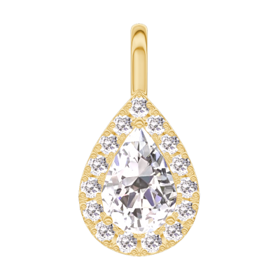 « L'ATELIER » NR. 203218Pandantiv Aur galben 9 carate - Diamant Pară 0.3 carate - Halo Diamant - Fără lanţ