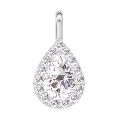 « L'ATELIER » NR. 203219Pandantiv Aur alb 18 carate - Diamant Pară 0.3 carate - Halo Diamant - Fără lanţ