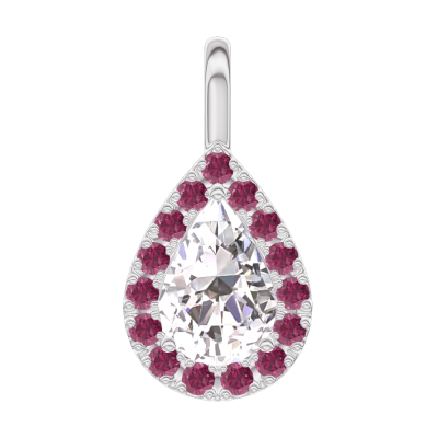 « L'ATELIER » NR. 203268Pandantiv Aur alb 9 carate - Diamant Pară 0.3 carate - Halo Rubin - Fără lanţ