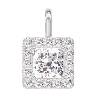 « L'ATELIER » Nº203796Pandantiv Aur alb 9 carate - Diamante de laborator Princess 0.3 carate - Halo Diamante de laborator - Fără lanţ