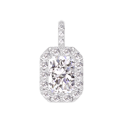 « L'ATELIER » NR. 203992Pandantiv Aur alb 9 carate - Diamante de laborator Smarald 0.3 carate - Halo Diamante de laborator - Încrustare Diamante de laborator - Fără lanţ