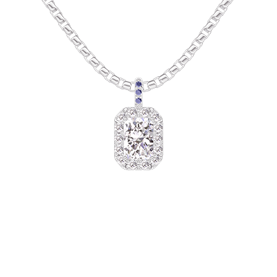 « L'ATELIER » Nº204032Pandantiv Aur alb 9 carate - Diamante de laborator Smarald 0.3 carate - Halo Diamante de laborator - Încrustare Safir albastru - Lanţ Veneţian