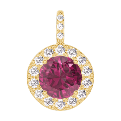 « L'ATELIER » Nº204757Pandantiv Aur galben 18 carate - Rubin rotund 0.3 carate - Halo Diamant - Încrustare Diamant - Fără lanţ 4