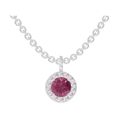 Pandantiv Aur alb 9 carate - Rubin rotund 0.3 carate - Halo Diamant - Încrustare Diamant - Lanţ Zale