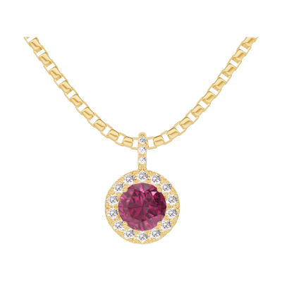 « L'ATELIER » NR. 204790Pandantiv Aur galben 9 carate - Rubin rotund 0.3 carate - Halo Diamant - Încrustare Diamant - Lanţ Veneţian 4