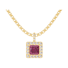 Pandantiv Aur galben 9 carate - Rubin Princess 0.3 carate - Halo Diamant - Încrustare Diamant - Lanţ Veneţian