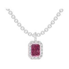 « L'ATELIER » NR. 205160Pandantiv Aur alb 9 carate - Rubin Smarald 0.3 carate - Halo Diamant - Încrustare Diamant - Lanţ Zale