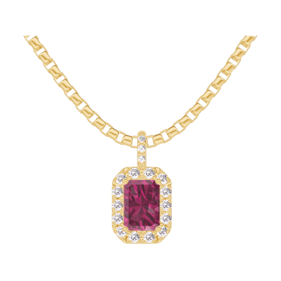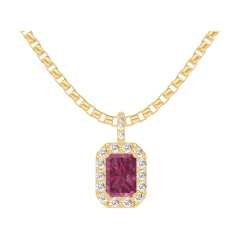 « L'ATELIER » NR. 205174Pandantiv Aur galben 9 carate - Rubin Smarald 0.3 carate - Halo Diamant - Încrustare Diamant - Lanţ Veneţian
