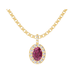 Pandantiv Aur galben 9 carate - Rubin Oval 0.3 carate - Halo Diamant - Încrustare Diamant - Lanţ Veneţian