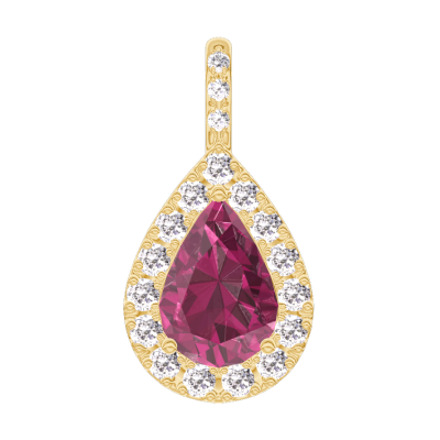 « L'ATELIER » Nº205525Pandantiv Aur galben 18 carate - Rubin Pară 0.3 carate - Halo Diamant - Încrustare Diamant - Fără lanţ