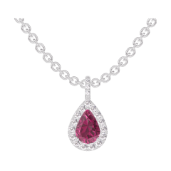« L'ATELIER » NR. 205544Pandantiv Aur alb 9 carate - Rubin Pară 0.3 carate - Halo Diamant - Încrustare Diamant - Lanţ Zale