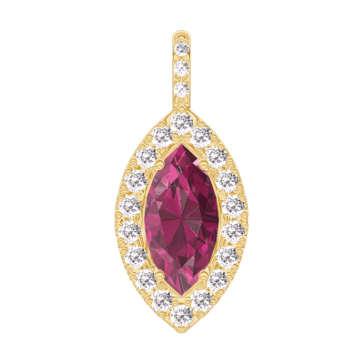 « L'ATELIER » Nº205717Pandantiv Aur galben 18 carate - Rubin Marquise 0.3 carate - Halo Diamant - Încrustare Diamant - Fără lanţ