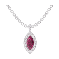 « L'ATELIER » NR. 205736Pandantiv Aur alb 9 carate - Rubin Marquise 0.3 carate - Halo Diamant - Încrustare Diamant - Lanţ Zale