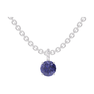 « L'ATELIER » Nº205879Pandantiv Aur alb 18 carate - Safir albastru rotund 0.3 carate - Încrustare Diamant - Lanţ Zale 4.8
