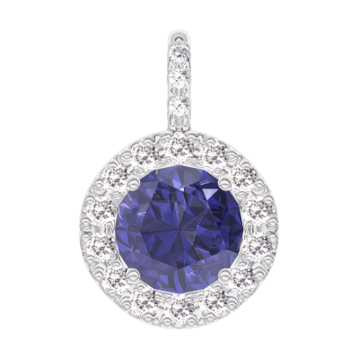 « L'ATELIER » NR. 205912Pandantiv Aur alb 9 carate - Safir albastru rotund 0.3 carate - Halo Diamant - Încrustare Diamant - Fără lanţ 4