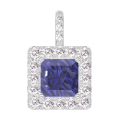 Pandantiv Aur alb 18 carate - Safir albastru Princess 0.3 carate - Halo Diamant - Încrustare Diamant - Fără lanţ