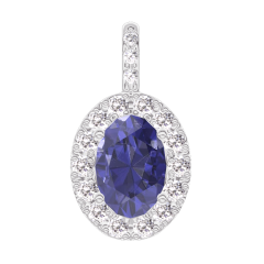 Pandantiv Aur alb 18 carate - Safir albastru Oval 0.3 carate - Halo Diamant - Încrustare Diamant - Fără lanţ