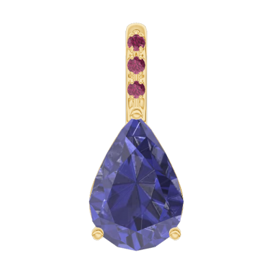 « L'ATELIER » Nº206634Pandantiv Aur galben 9 carate - Safir albastru Pară 0.3 carate - Încrustare Rubin - Fără lanţ 4.4