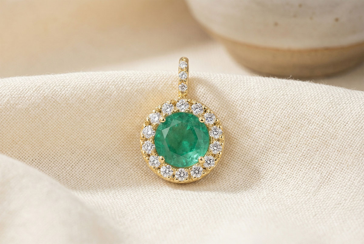 « L'ATELIER » NR. 207061Pandantiv Aur galben 18 carate - Smarald rotund 0.3 carate - Halo Diamant - Încrustare Diamant - Fără lanţ 4