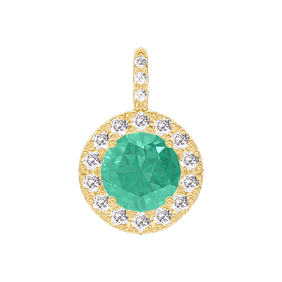 « L'ATELIER » Nº207062Pandantiv Aur galben 9 carate - Smarald rotund 0.3 carate - Halo Diamant - Încrustare Diamant - Fără lanţ 4