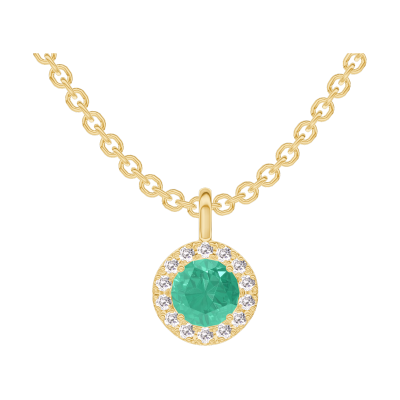 « L'ATELIER » NR. 207073Pandantiv Aur galben 18 carate - Smarald rotund 0.3 carate - Halo Diamant - Lanţ Zale 4