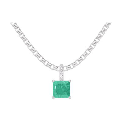 « L'ATELIER » Nº207240Pandantiv Aur alb 9 carate - Smarald Princess 0.3 carate - Încrustare Diamant - Lanţ Veneţian